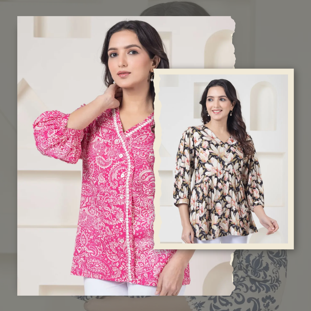 ● You can also pair the top with any skirt or any slow-bottom wear.