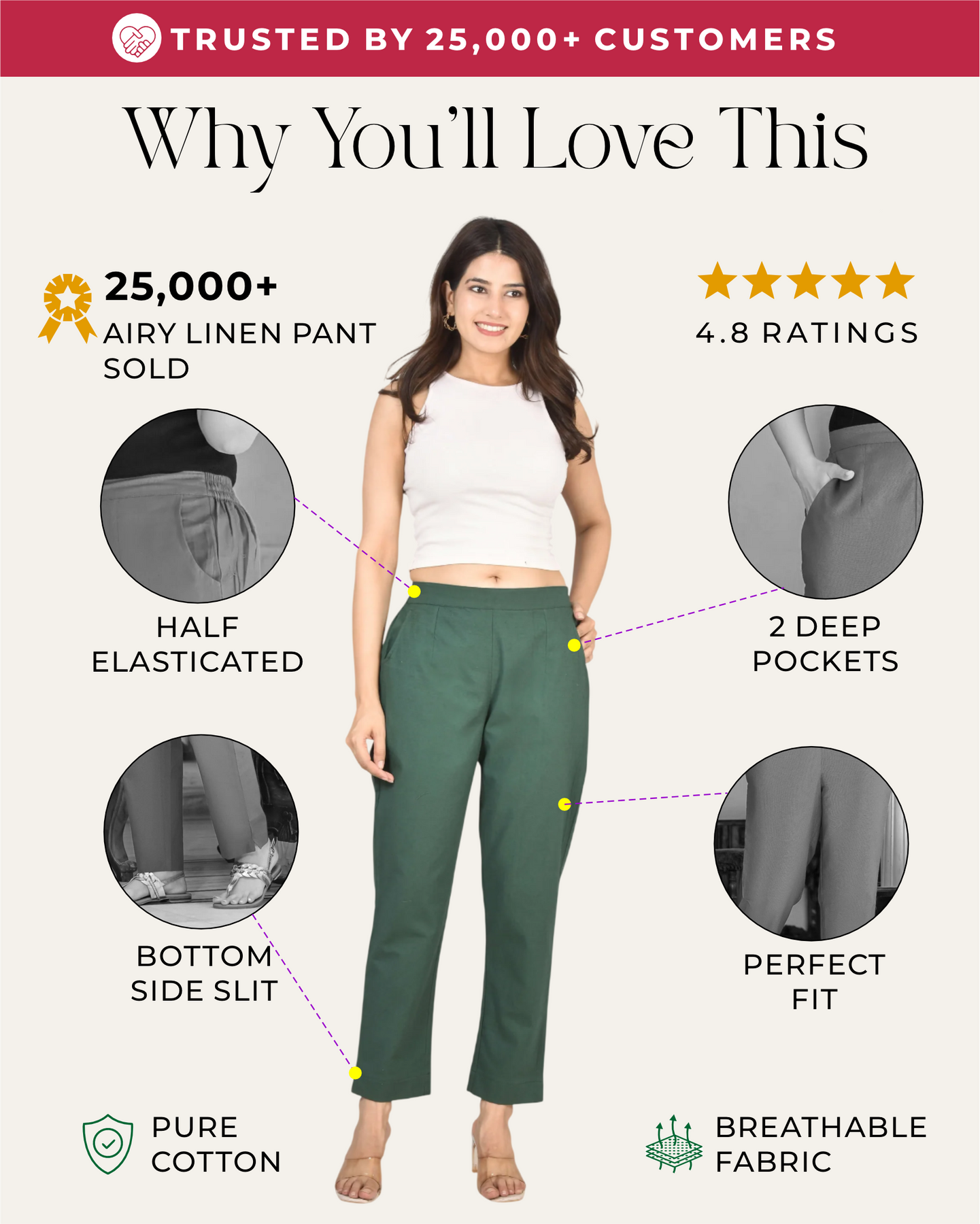 DARK BOTTEL GREEN AIRY LINEN PANTS