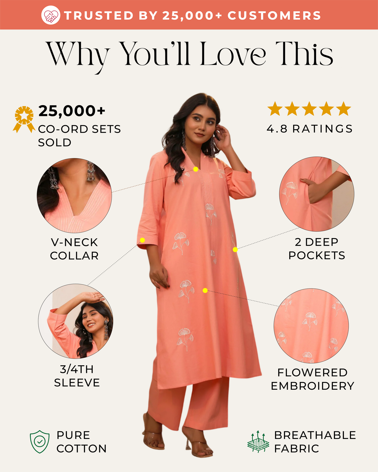 Peach Minimal Embroidered Aline Co-ord Set