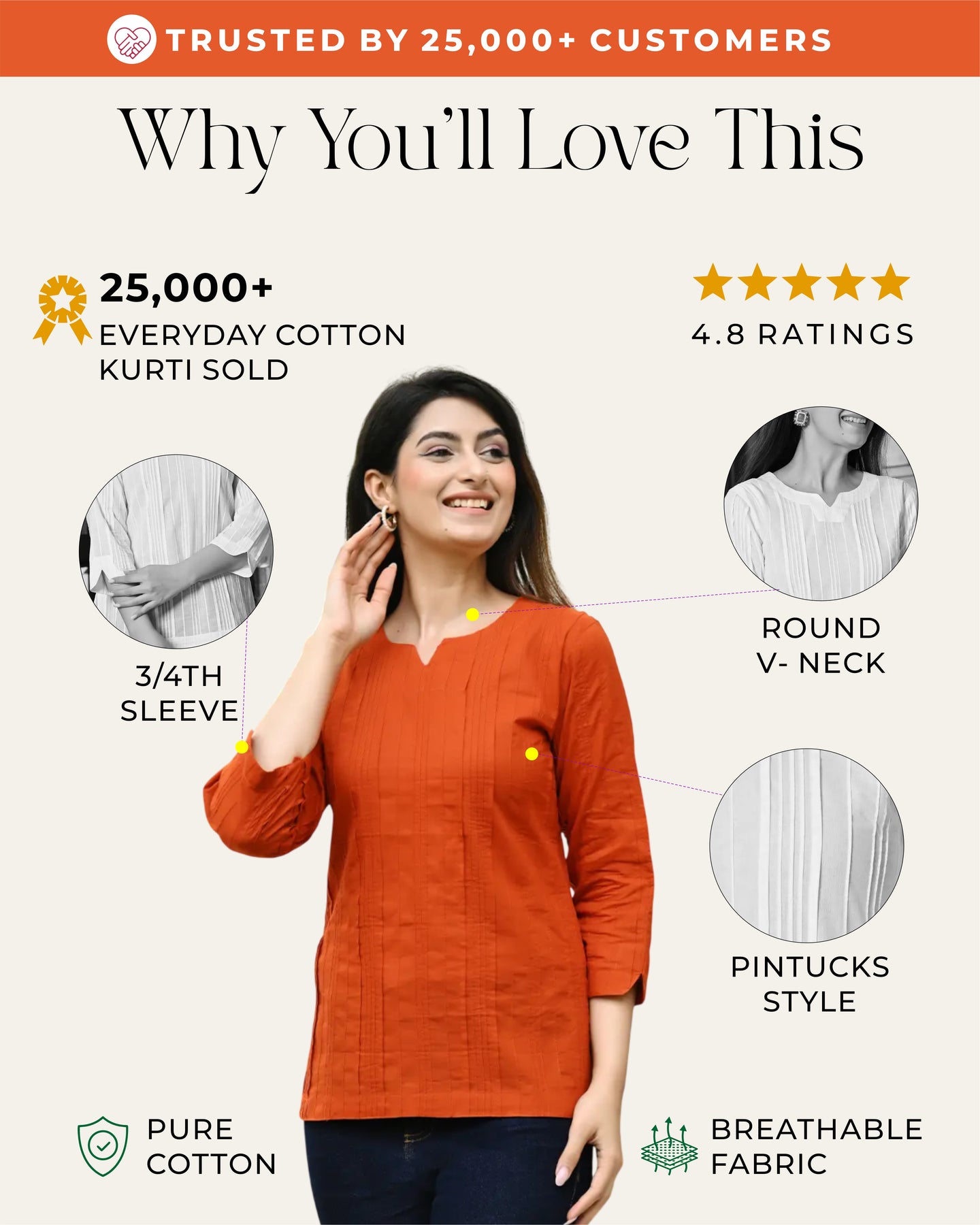 Orange Everyday Cotton Kurti