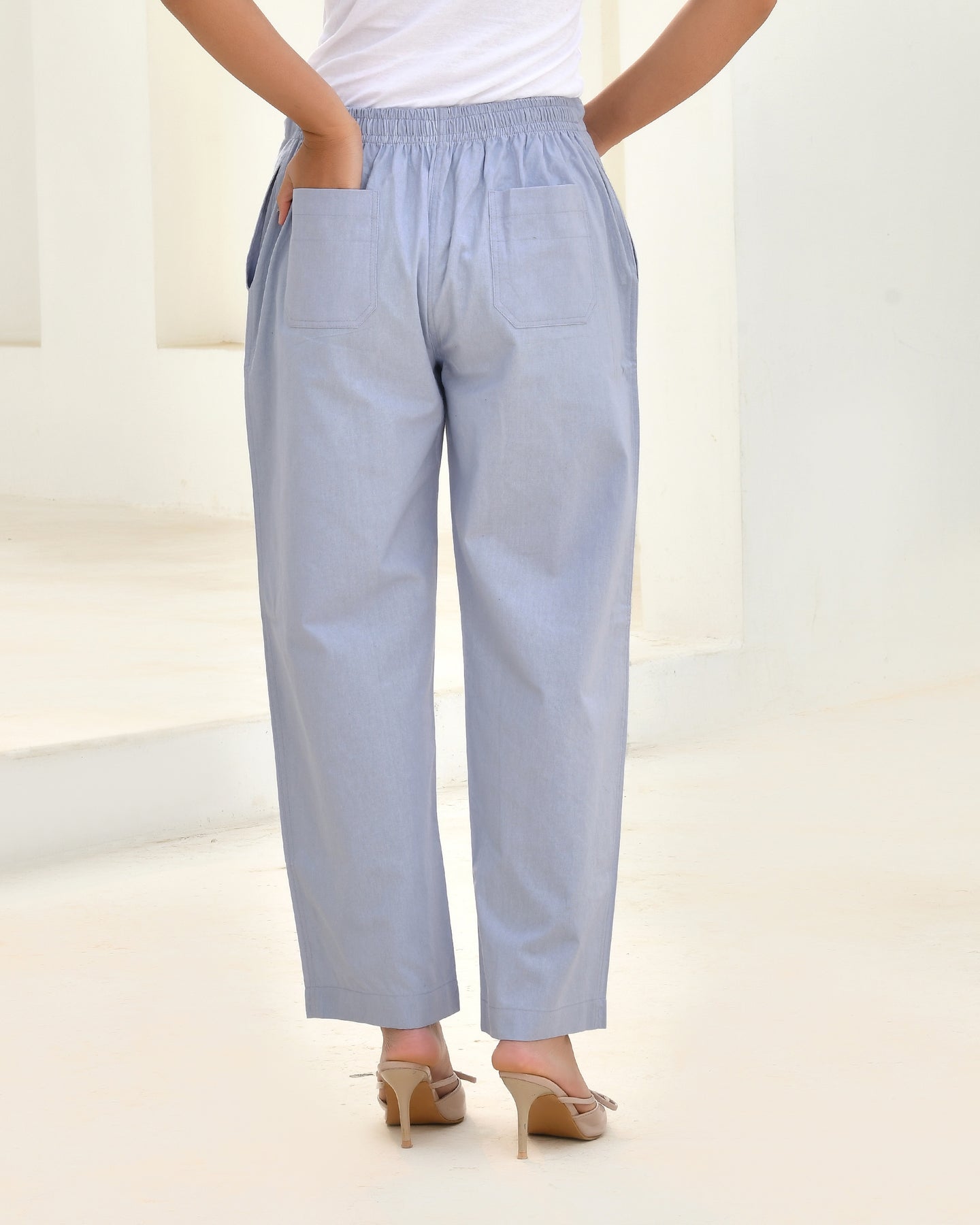 Design -Half-elastic waist | Drawstring & button | 2 side + 2 back pockets