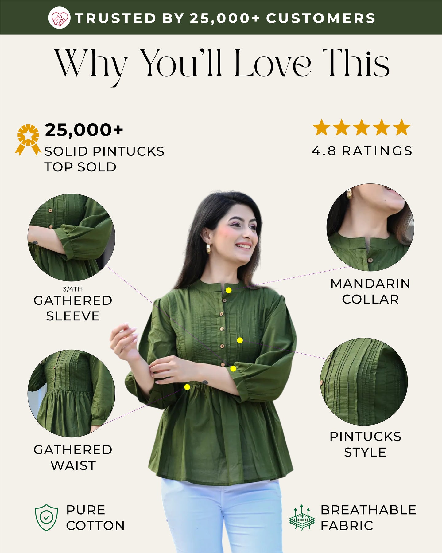Green Solid Pintucks Top