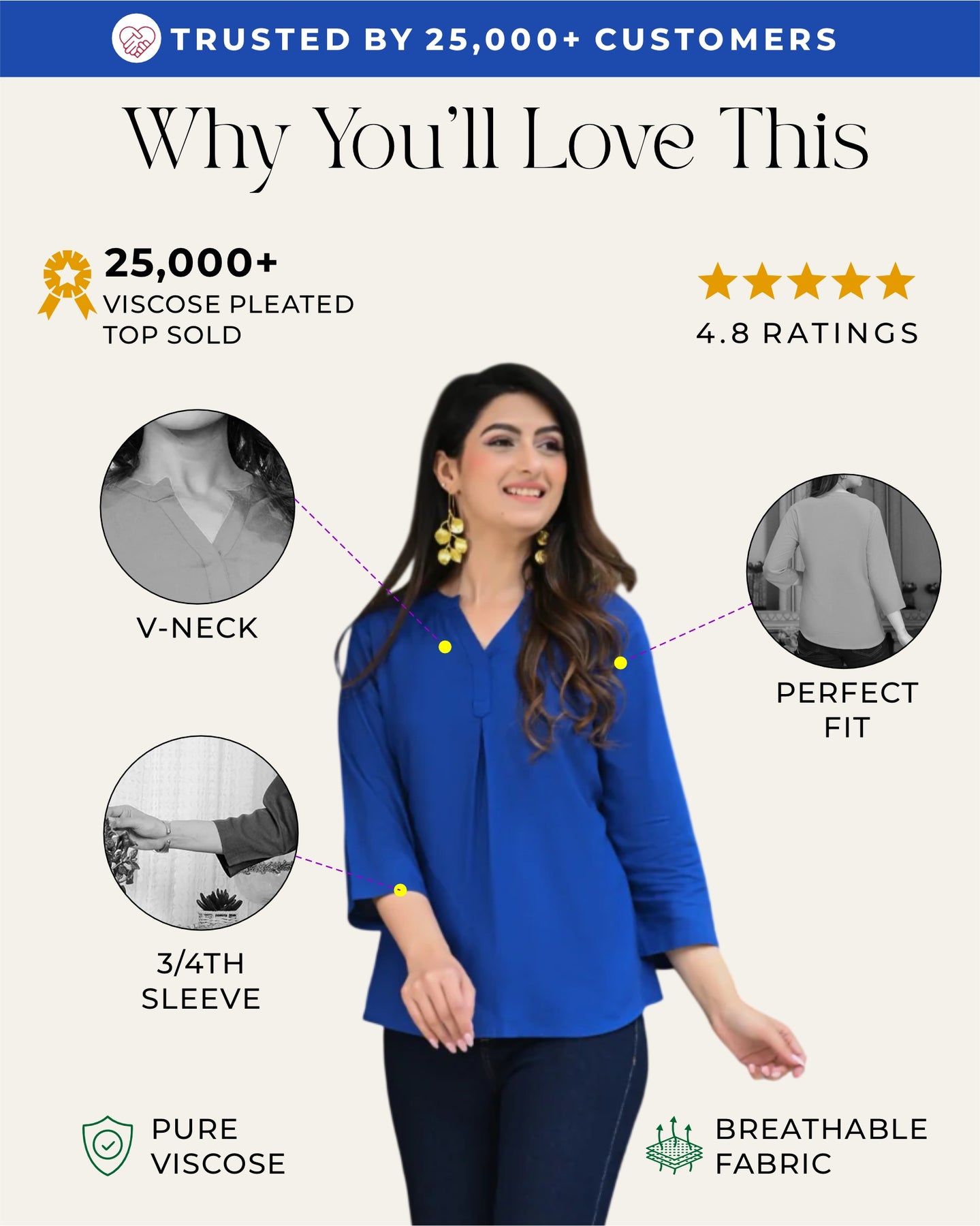 Royal Blue Viscose Pleated Top