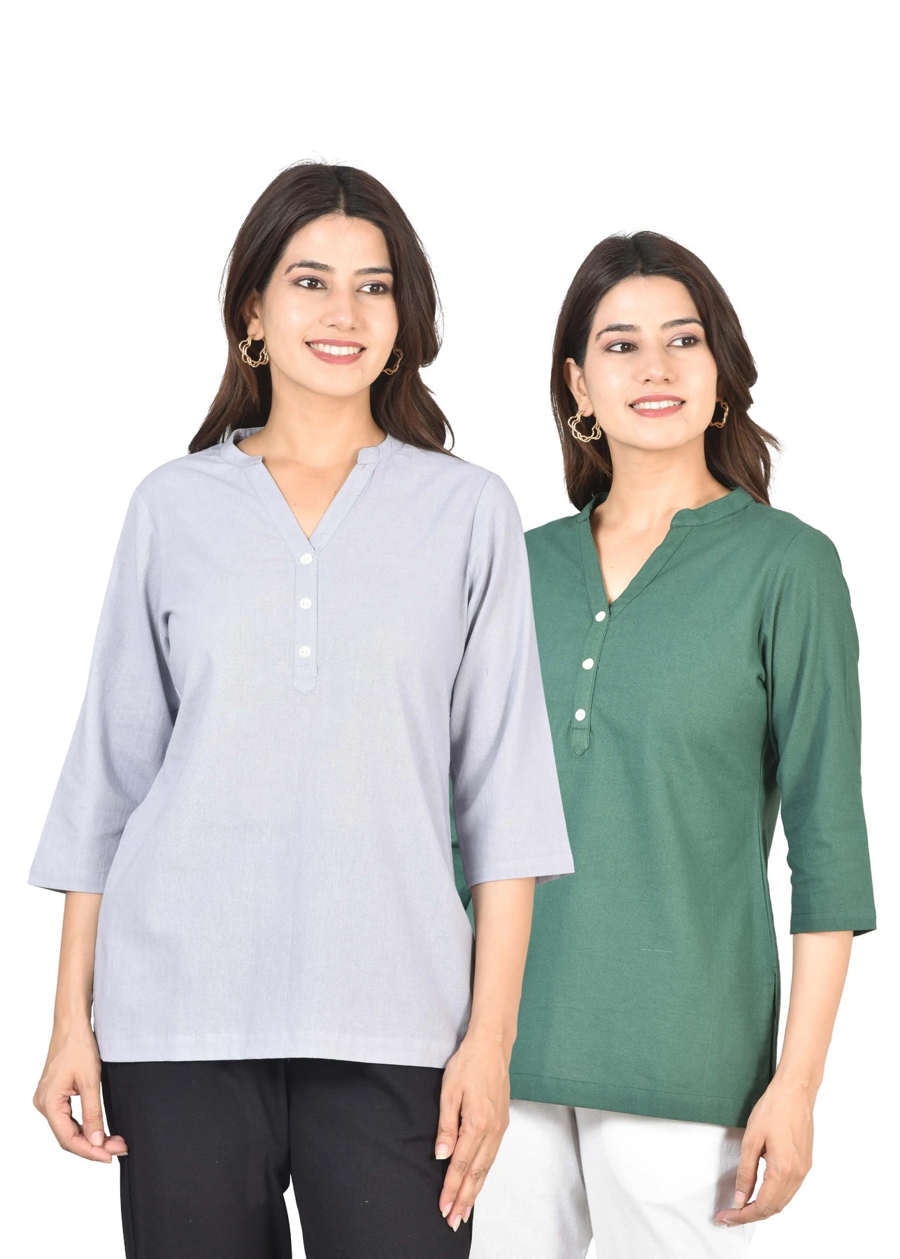 Airy Linen Short Kurti Combo- Lavender Gray & Bottle Green